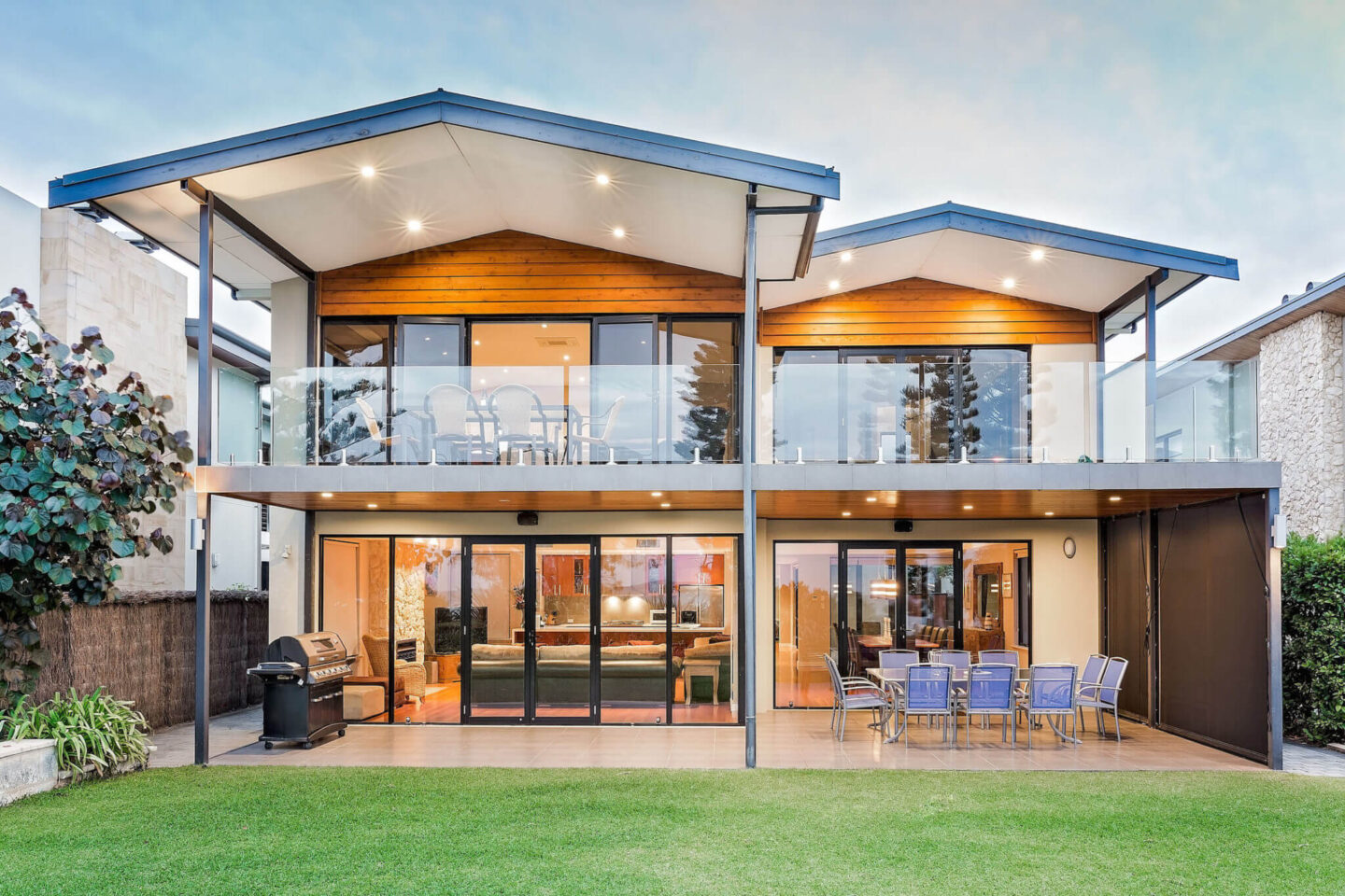 - Bottom level has open plan kitchen, dining and living opening onto the outdoor entertaining BBQ area. A large grassed yard is perfect for kids. There is also 2 bedrooms and 1 bathroom along with the laundry.
