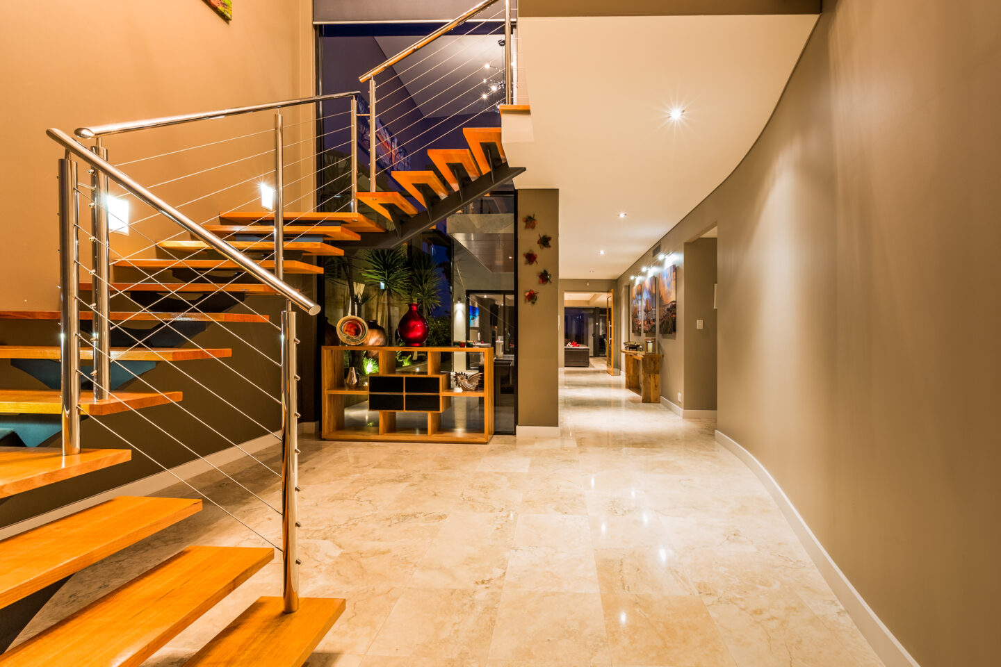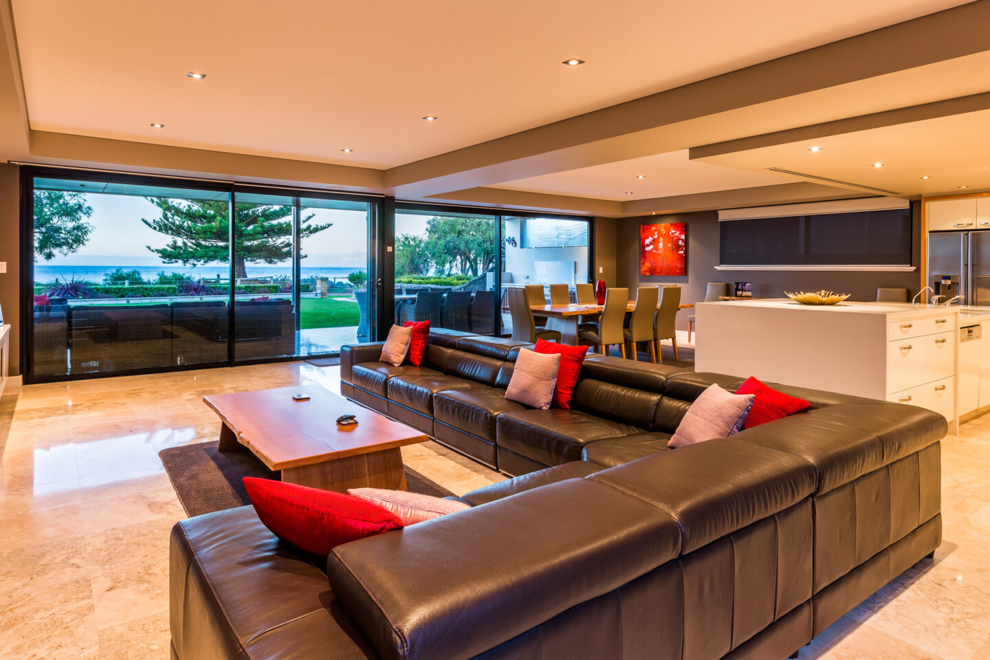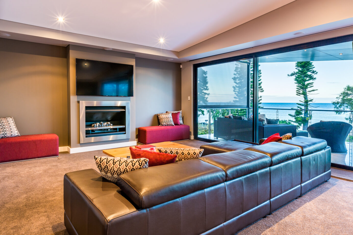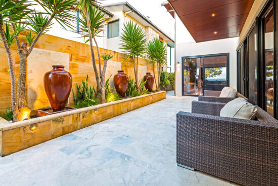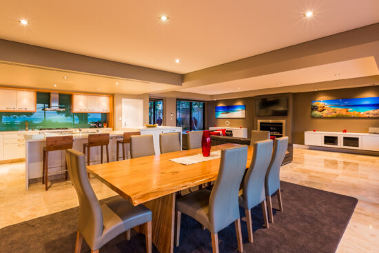 House 5 is a beautiful 2 storey Beachfront house with panoramic views, an open living area overlooking ocean with gas open fireplace and a large kitchen with caesar stone island bench/breakfast bar and a range of quality appliances. Boasting a magnificent outdoor entertaining area with travertine flooring and outdoor kitchen – you’re guests are sure to be impressed.