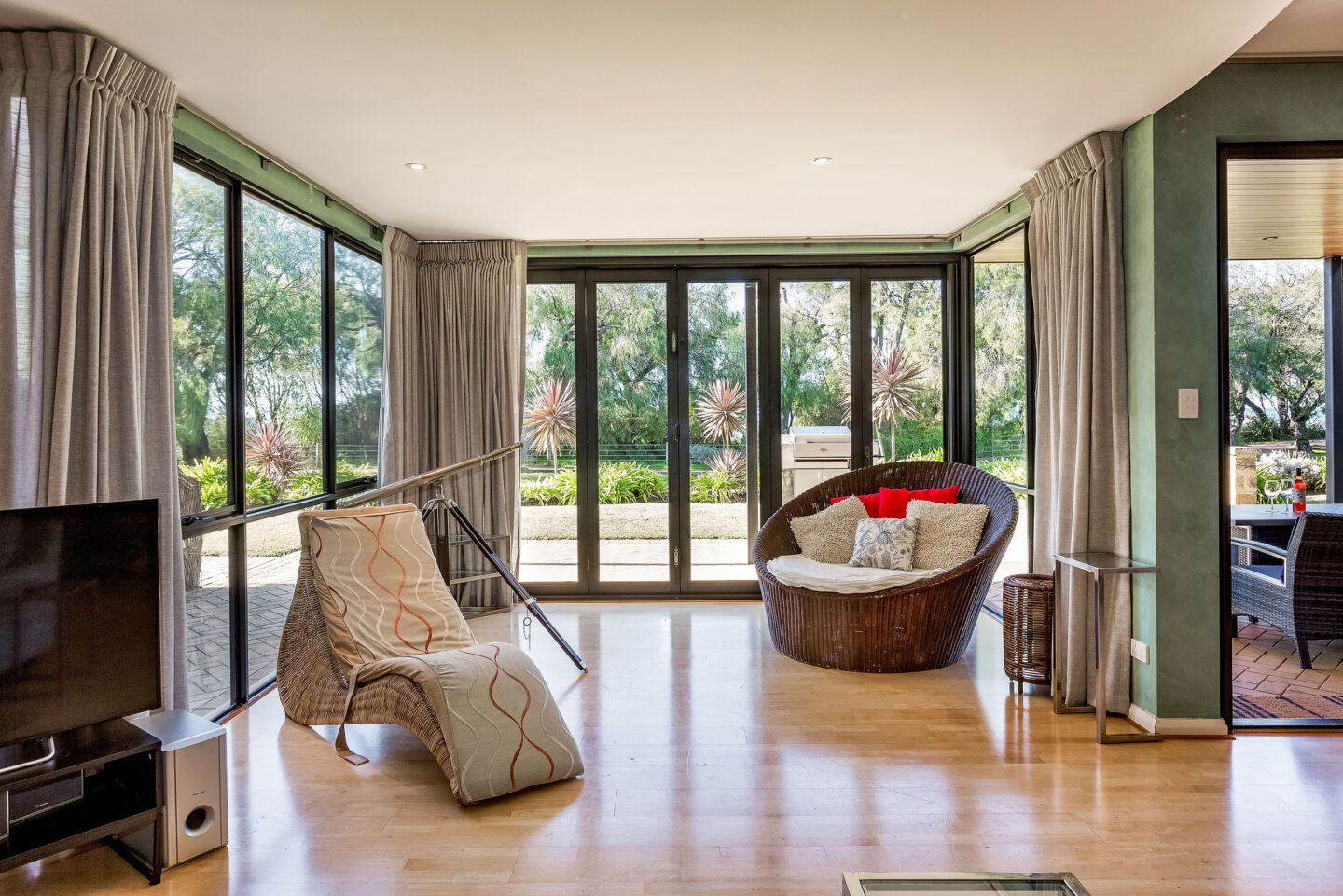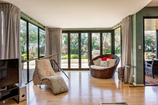 - Open plan kitchen, living and dining area open out onto outdoor entertaining area with setting and barbecue.