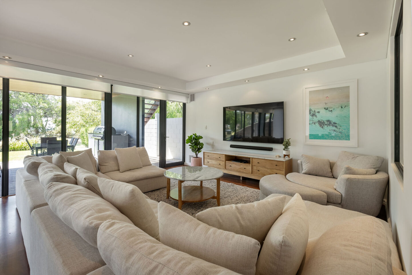 - Big open plan kitchen, living and dining area with large TV. Separate 2nd TV room.