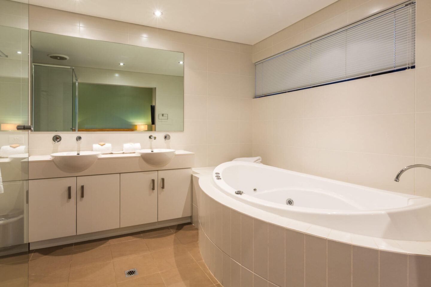 - Upstairs is the master room with king sized bed and ensuite/spa & TV.