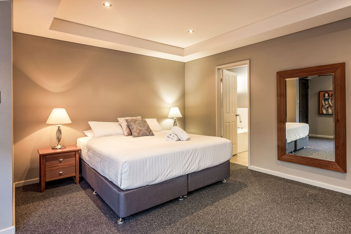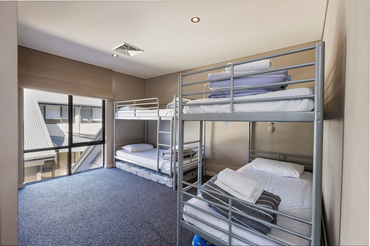 - The 2nd and 3rd bedrooms share a bathroom and have a queen bed and 2 king singles.