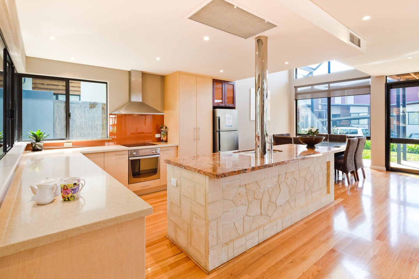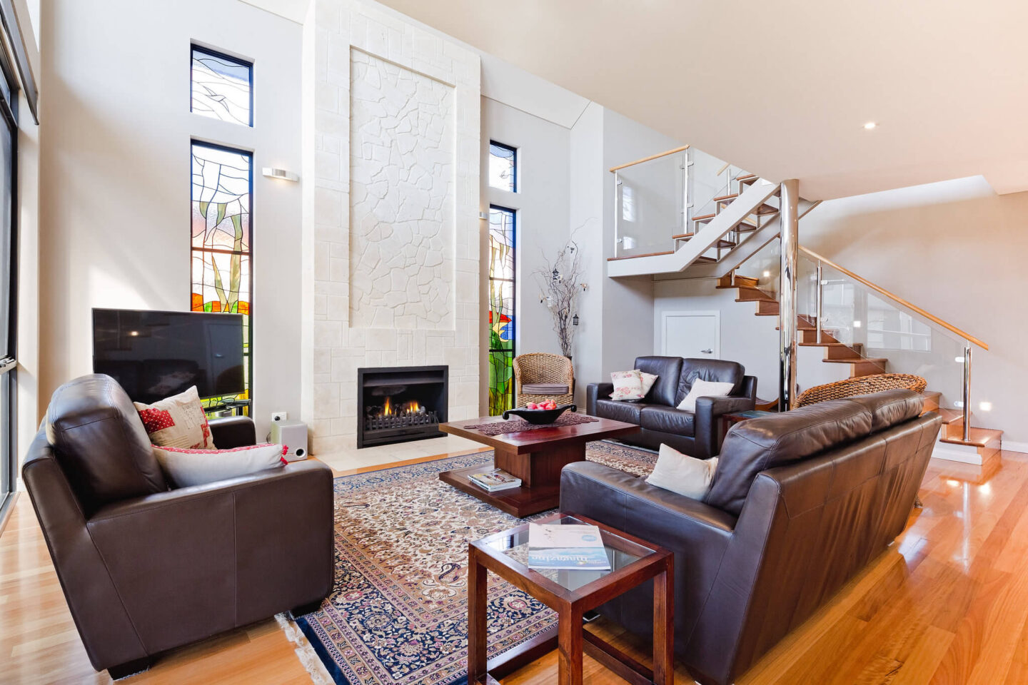 - Reverse cycle ducted airconditioning throughout along with limestone gas fire place.