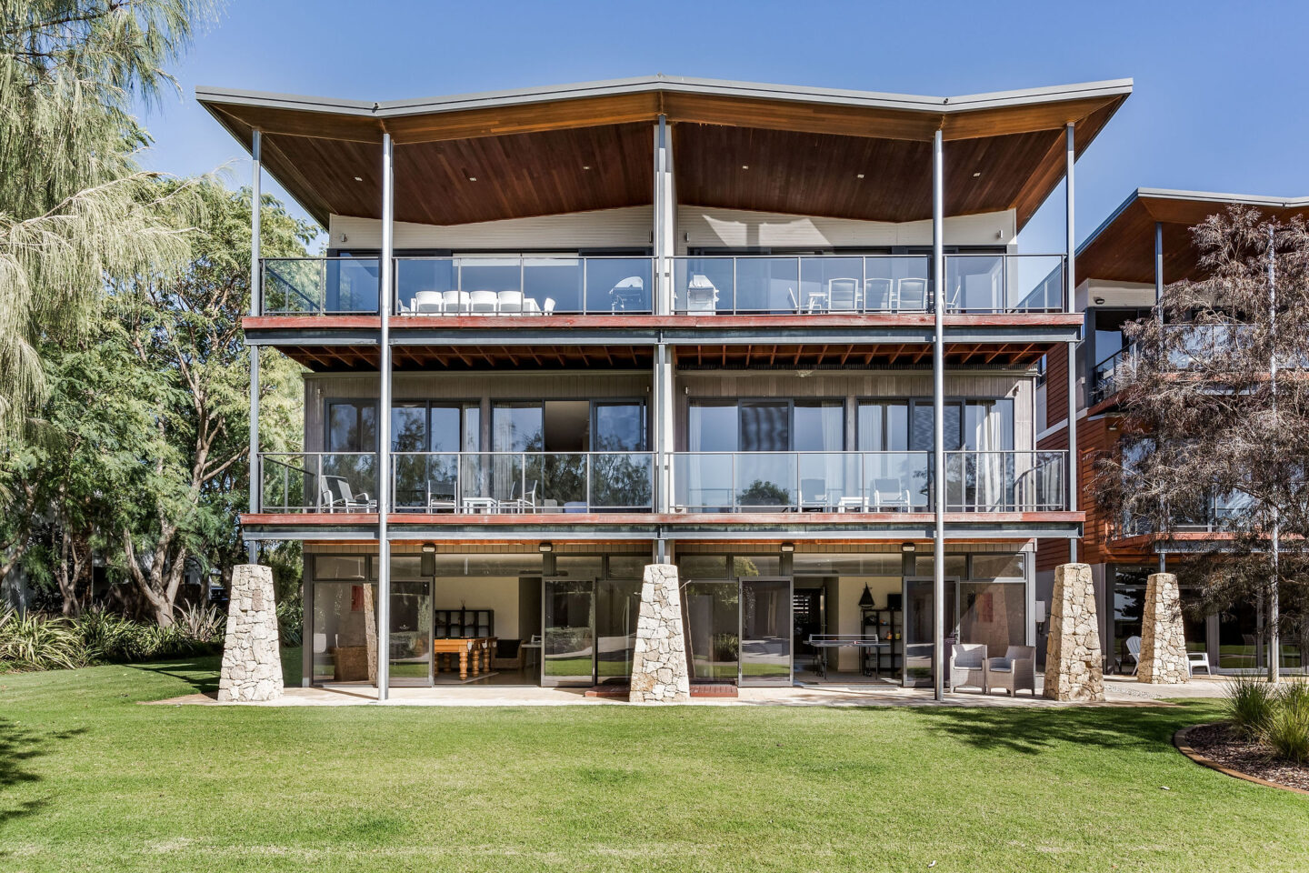 - The first floor contains 3 king size bedrooms all with their own private ensuites. The first has a large spa bath with a reverse cycle A/c. The 2nd & 3rd bedrooms both open out onto their own sundeck.