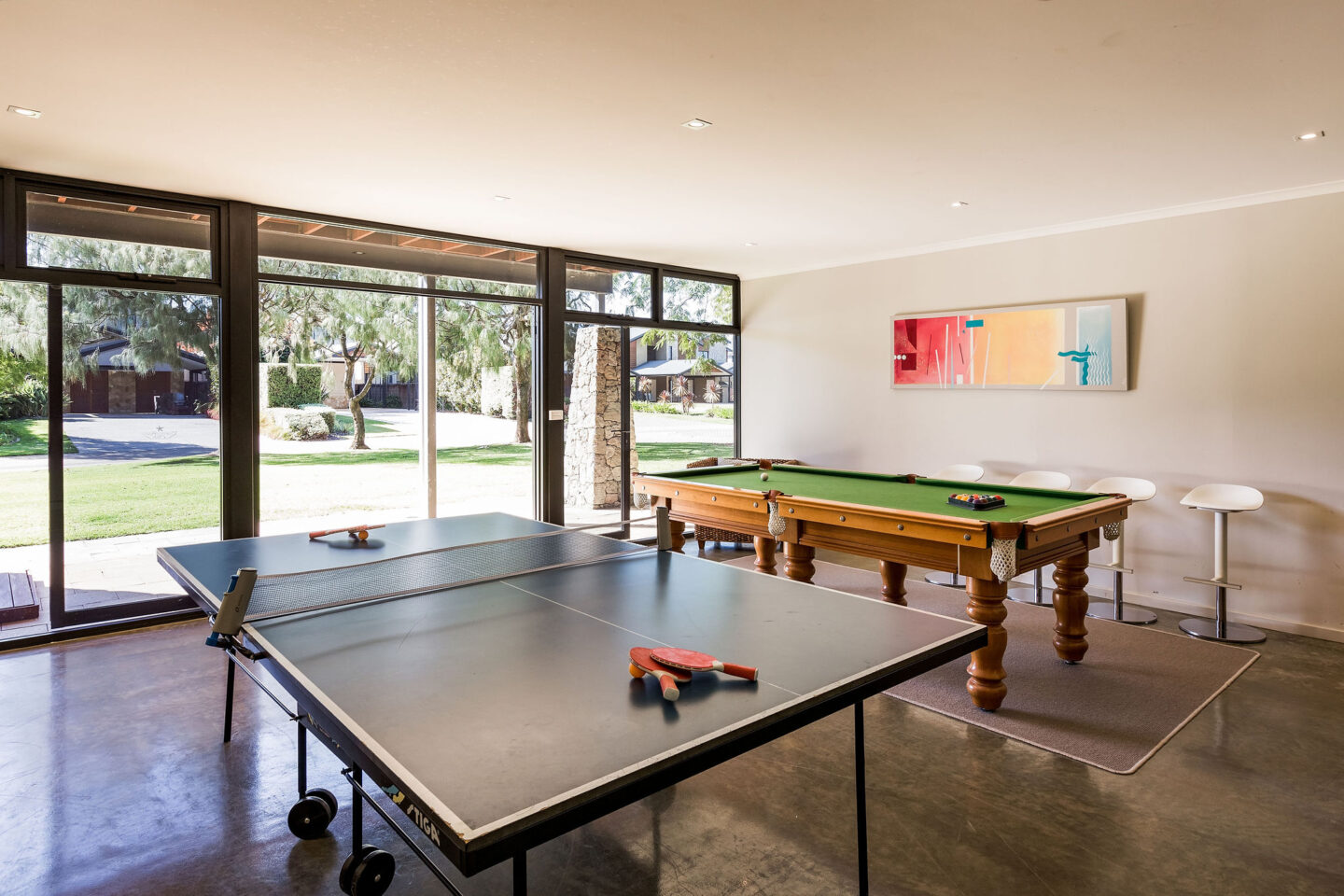 - Also downstairs adjoining the 4th bedroom is a large games room complete with Pool table and Table tennis which opens out onto a spacious lawn area.
