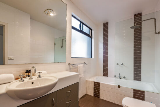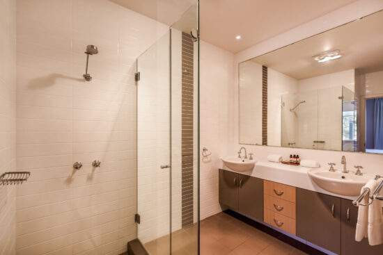 - The middle level off the entrance consists of 3 large bedrooms all with their own ensuites. The first bedroom is a queen sized room. The 2nd bedroom has a king sized bed (can be made into twin share) and the 3rd a king bed. Both these rooms have their own ensuites and open onto decked balcony.