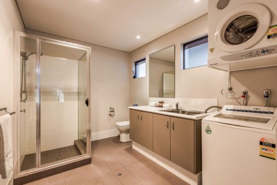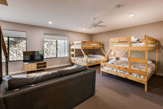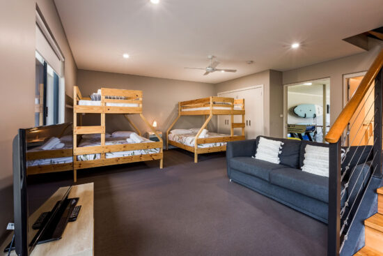 - Downstairs is a large bedroom with 2 queen bunks and includes a TV and DVD player. This has its own bathroom and fully equipped laundry.