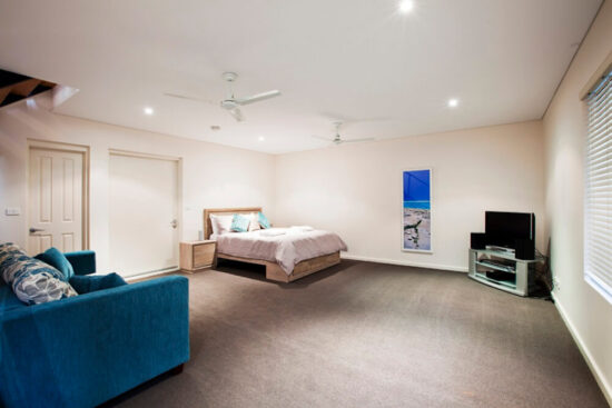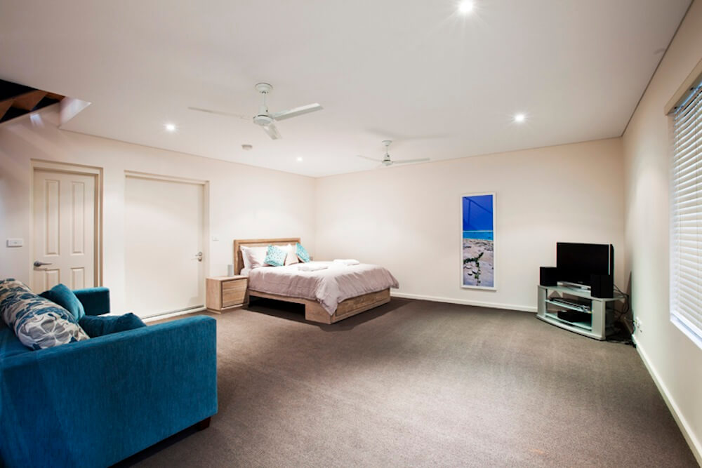 - Downstairs is large queen bedroom complete with TV and sitting area. This also has its own bathroom and fully equipped laundry.