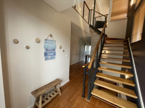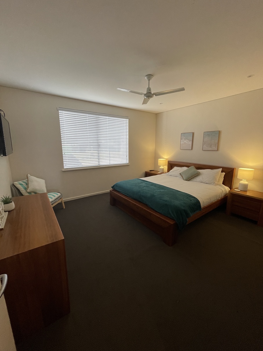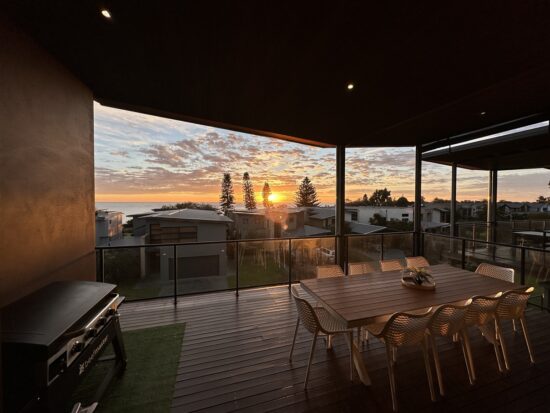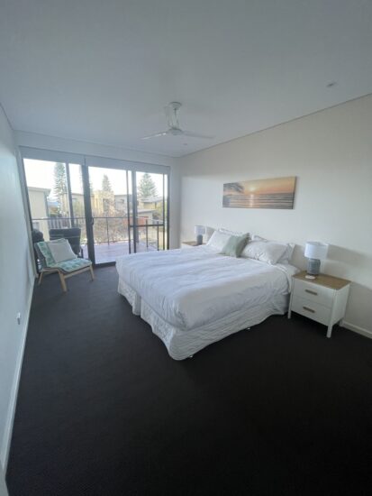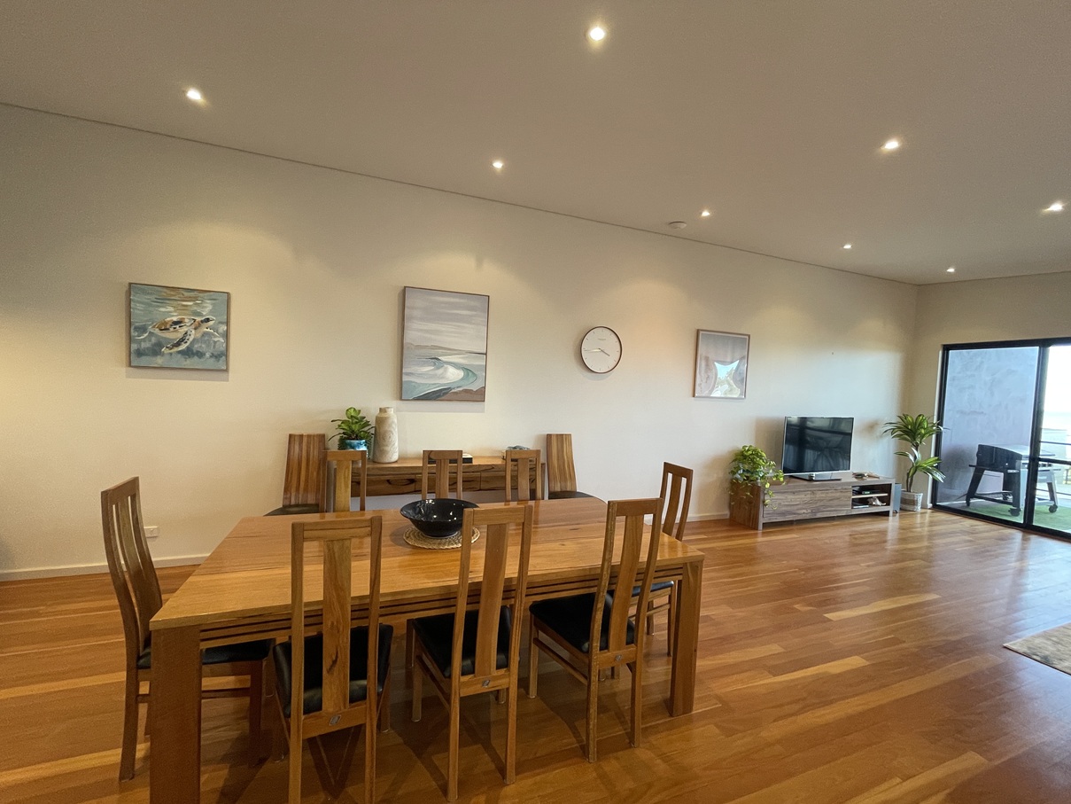This spacious four-bedroom, three-bathroom home is designed with comfort and flexibility in mind. The entry-level features three king-size bedrooms—which can be converted into king singles to suit your needs on request. The master suite boasts a private ensuite, while the two ocean-facing bedrooms share access to a luxurious main bathroom complete with a large soaking spa bath.